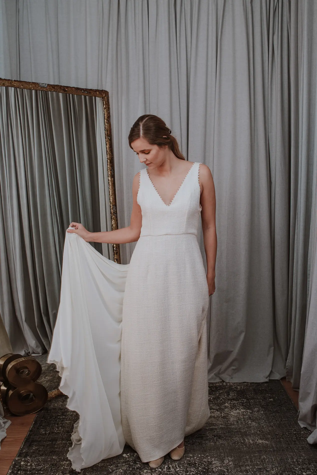 Os vestidos de coleção são únicos e requerem prova e eventuais ajustes.