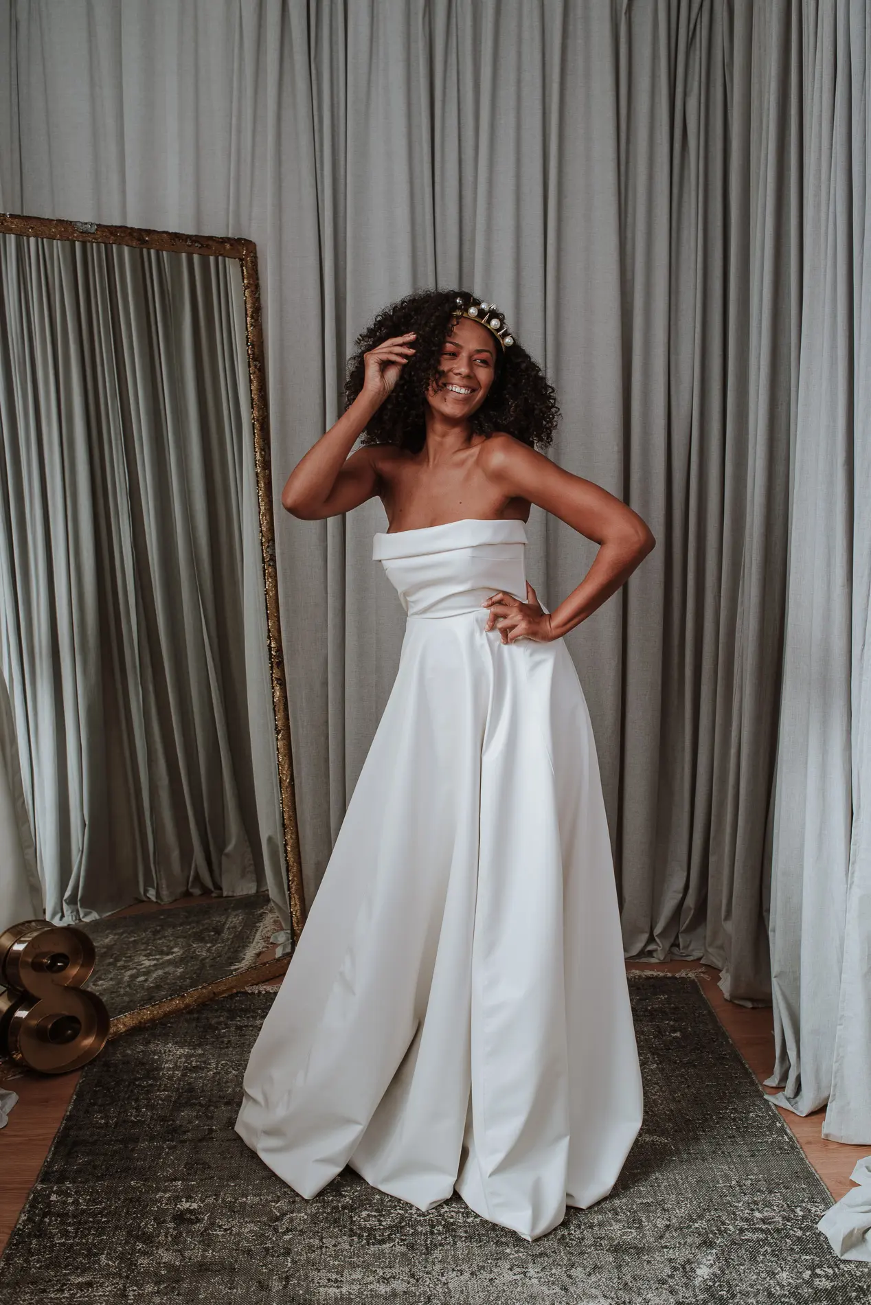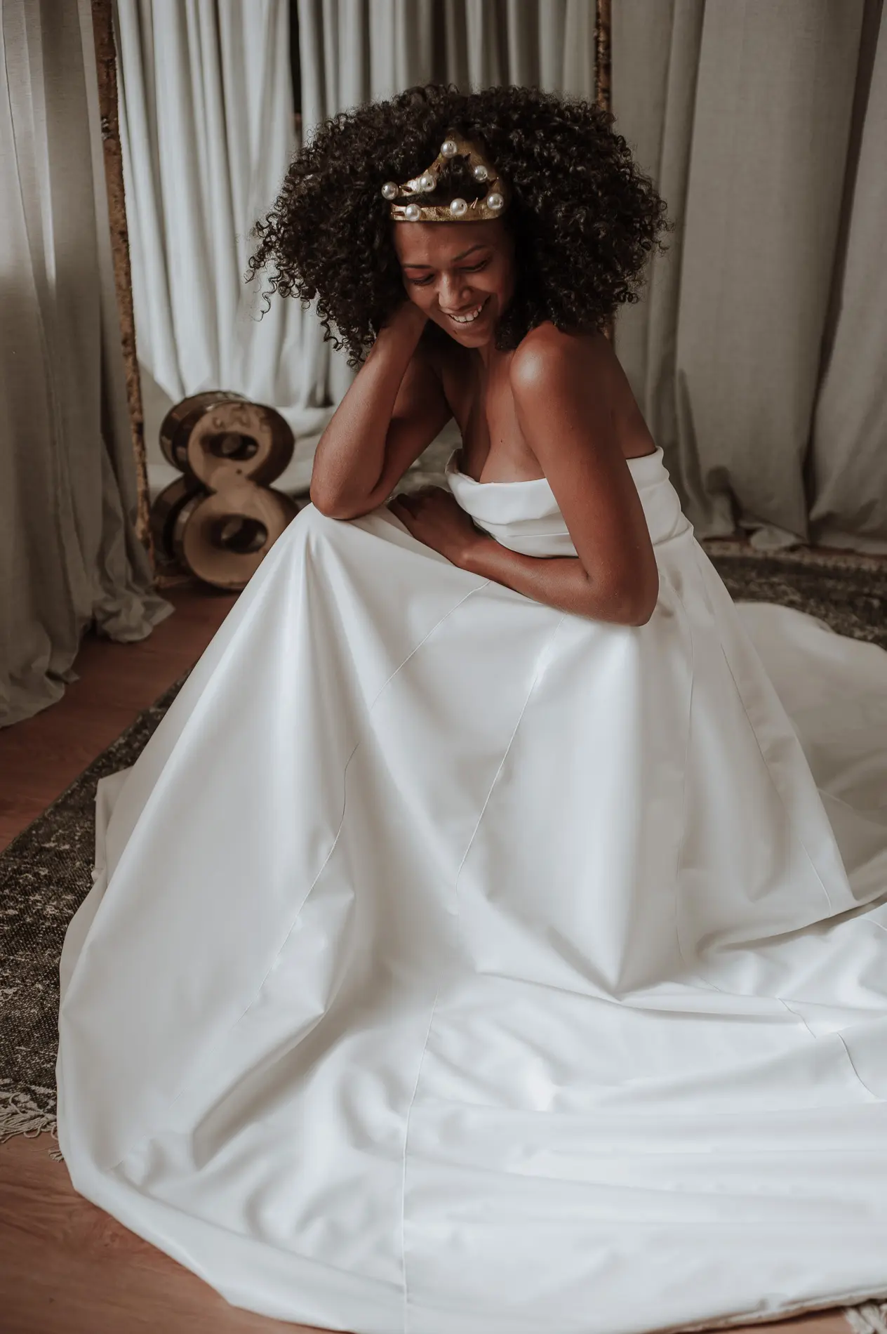 Os vestidos de coleção são únicos e requerem prova e eventuais ajustes.