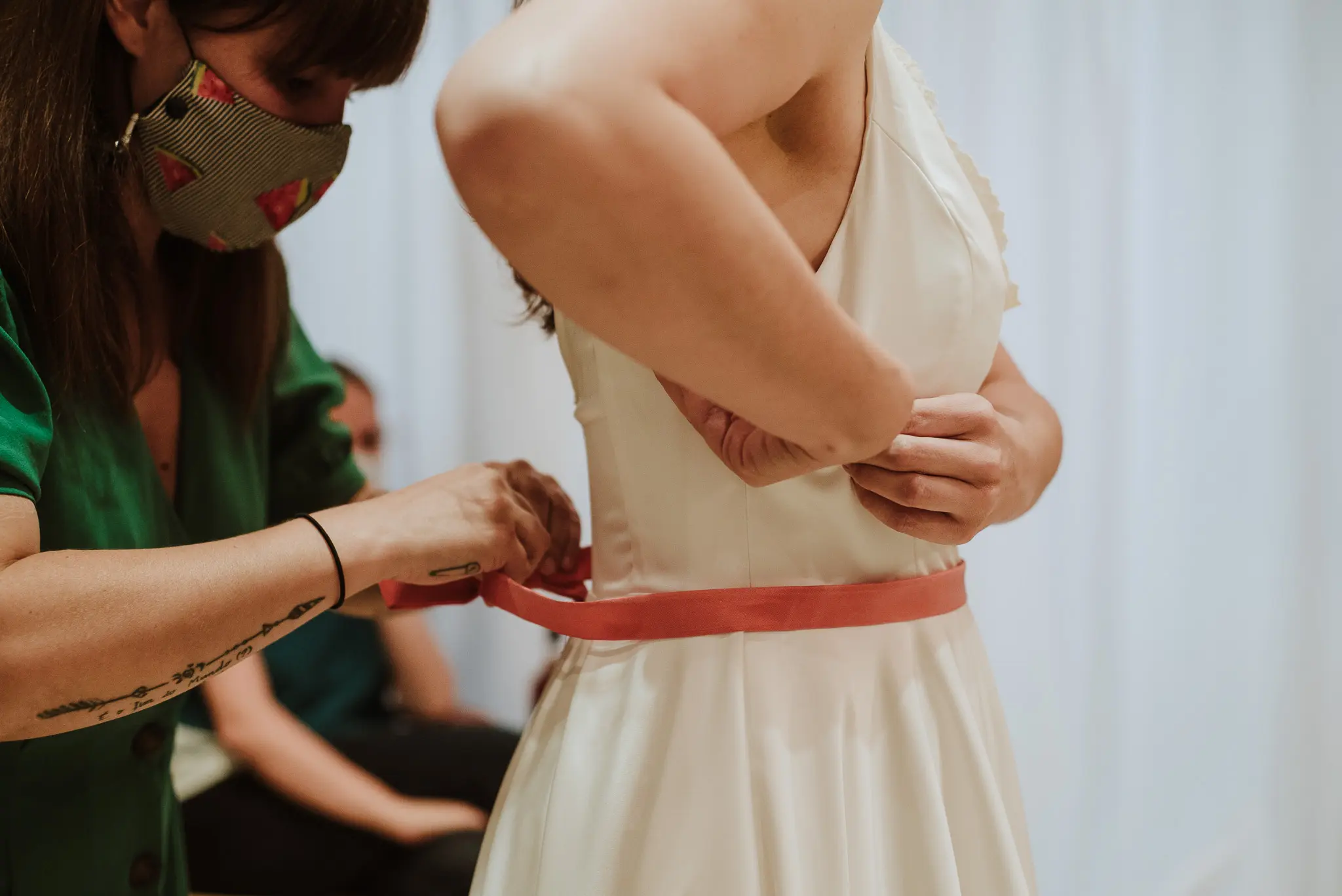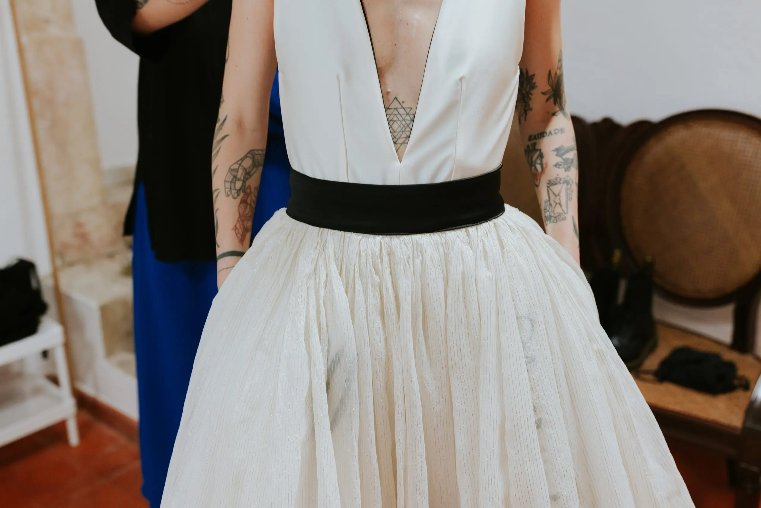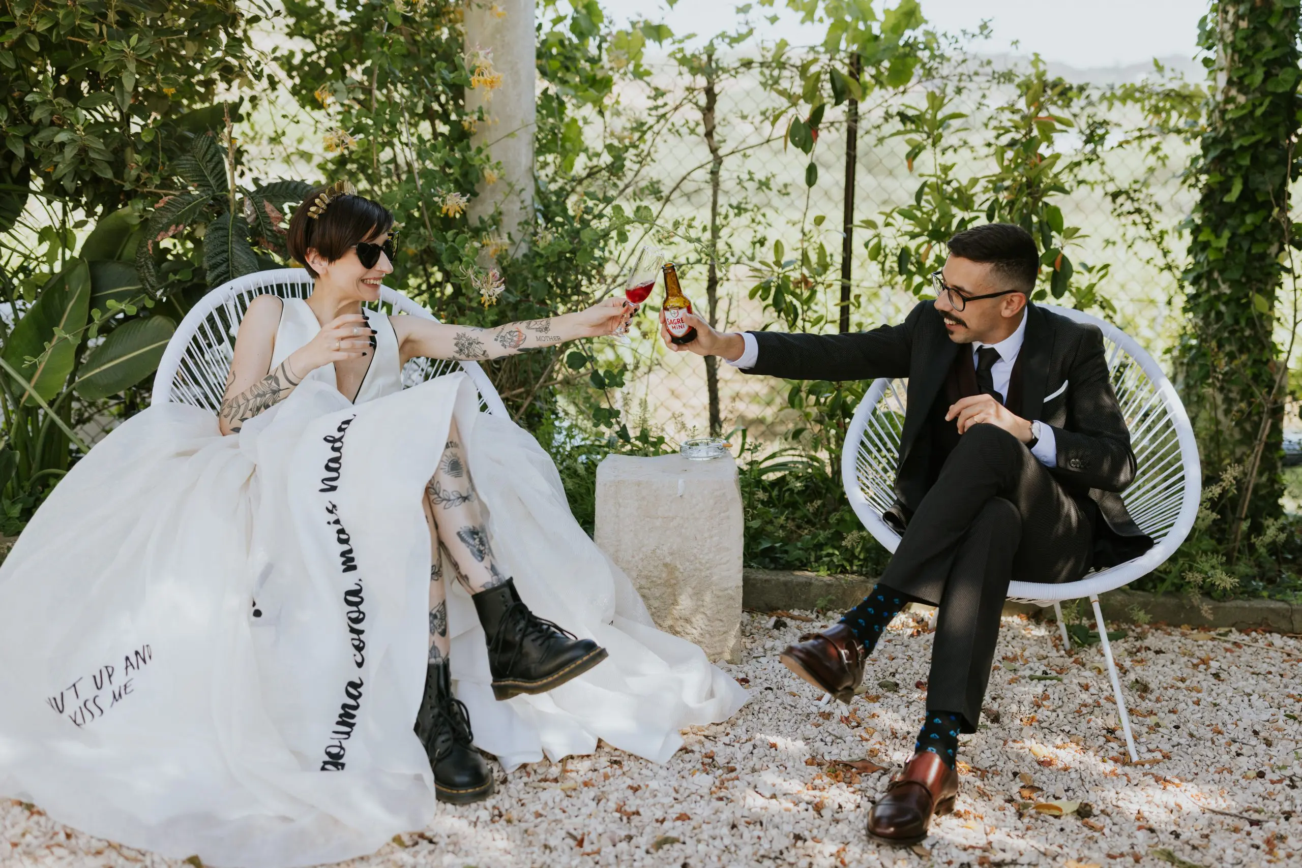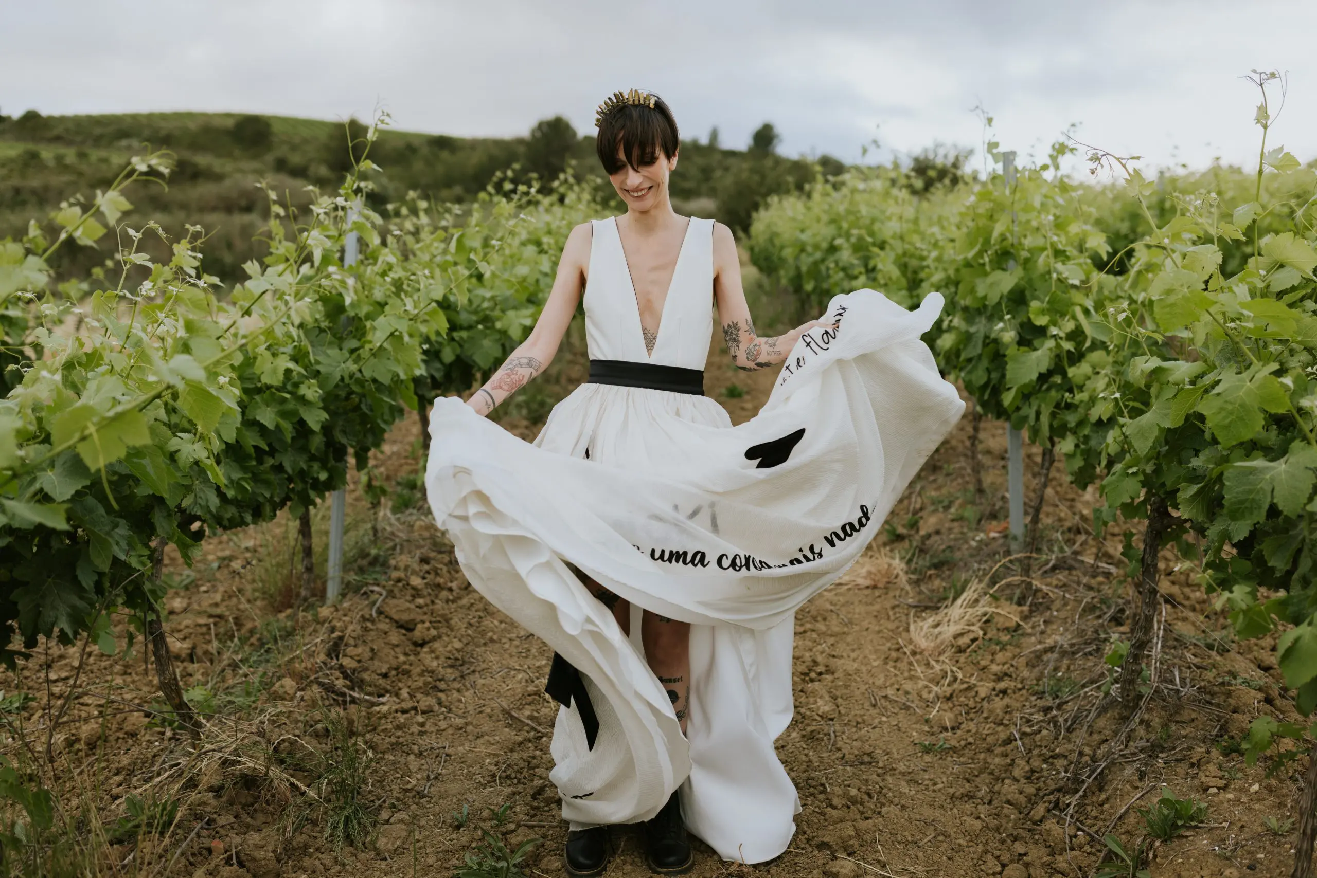 "A Rita leu a minha alma e entrou-me nos sonhos com pés de lã e mão de fada... Viu as minhas asas e quis voar comigo! Um vestido fora da caixa, mas meu, mas EU. Tão EU. A rita é uma artista maravilhosa e uma mulher inspiradora que se inventa, reinventa e alenta. Rita Álvares Pereira, obrigada pela minha capa de super-noiva Covid, vestida de mim e de amor!"