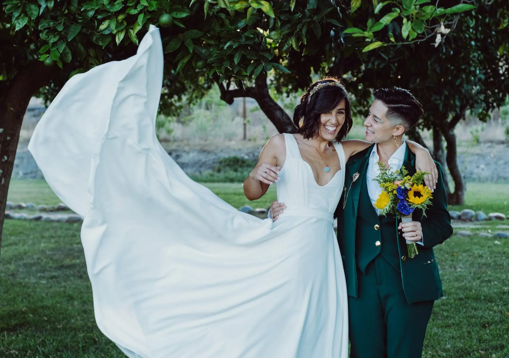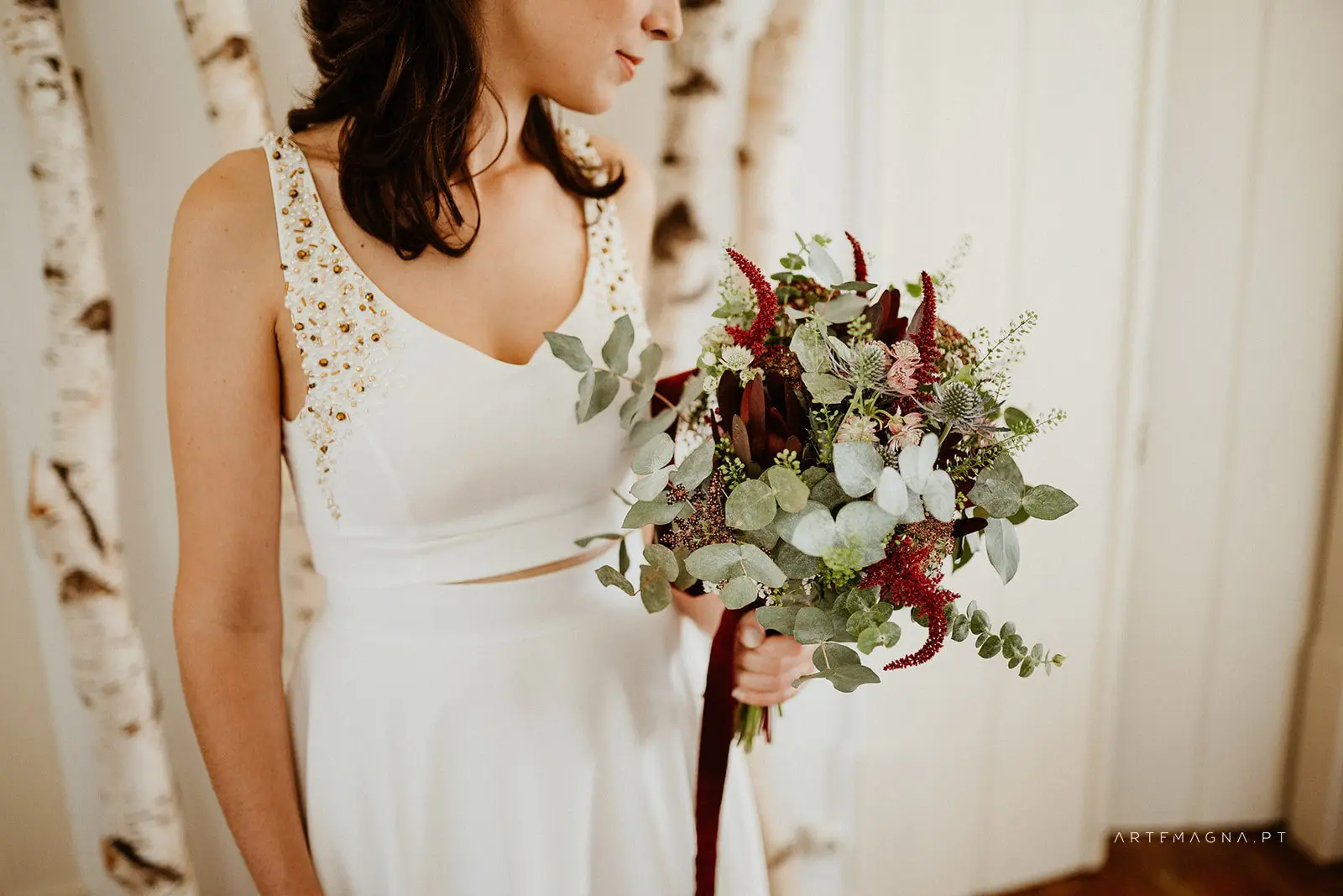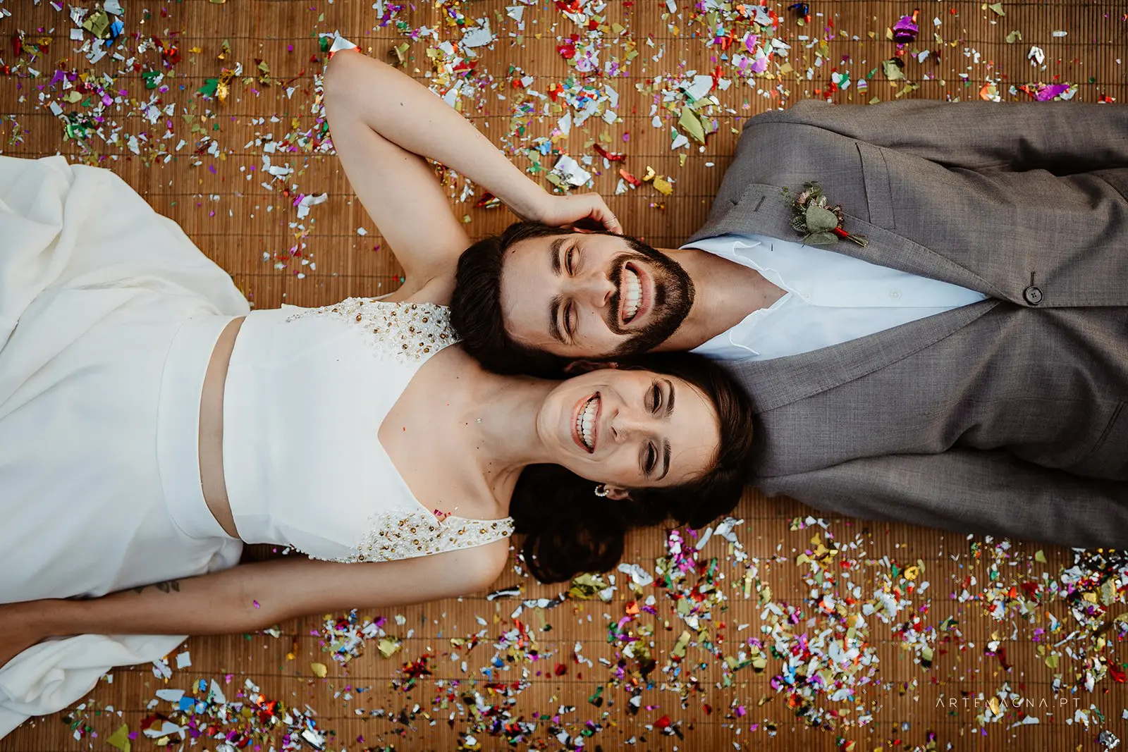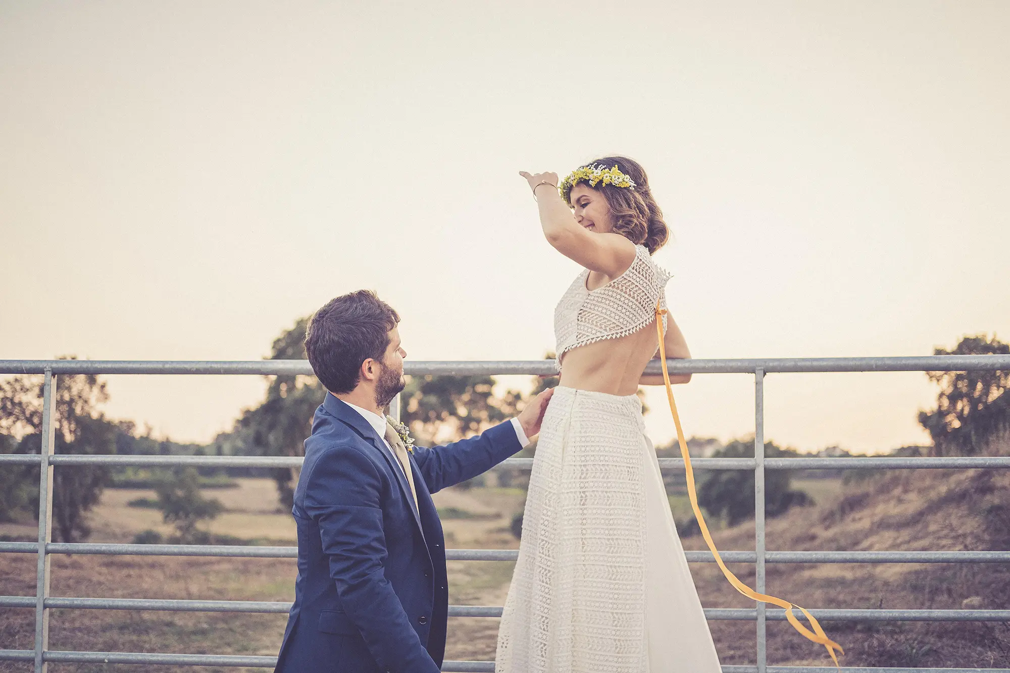 "A Rita leu a minha alma e entrou-me nos sonhos com pés de lã e mão de fada... Viu as minhas asas e quis voar comigo! Um vestido fora da caixa, mas meu, mas EU. Tão EU. A rita é uma artista maravilhosa e uma mulher inspiradora que se inventa, reinventa e alenta. Rita Álvares Pereira, obrigada pela minha capa de super-noiva Covid, vestida de mim e de amor!"