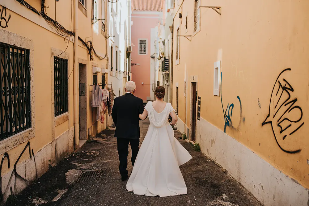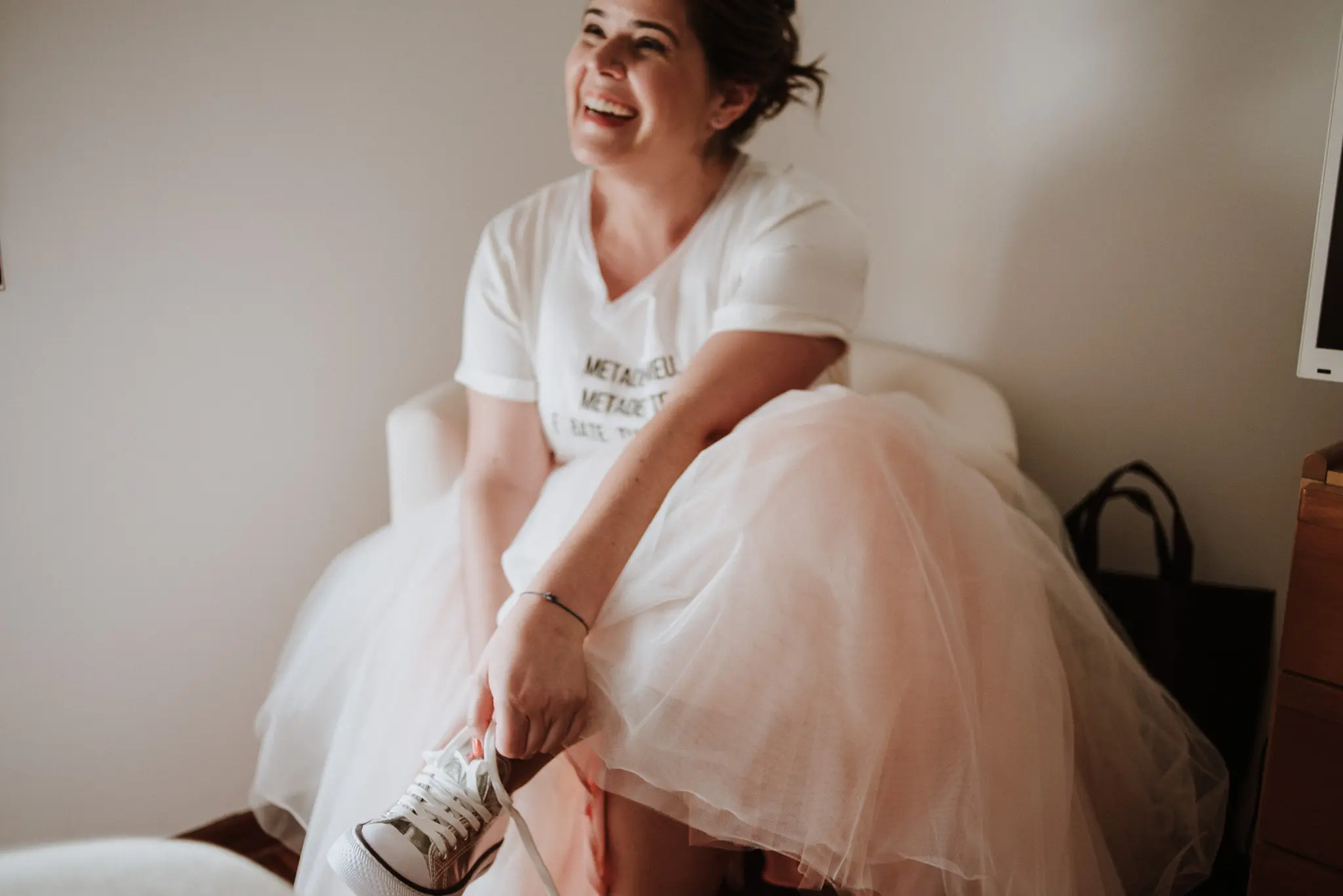 Quando vesti o meu vestido de noiva senti-me a pessoa mais bonita e confiante daquele dia tão espacial. O meu vestido de noiva era super versátil, comprido para a cerimónia e curto para a festa rija. Adorei!!