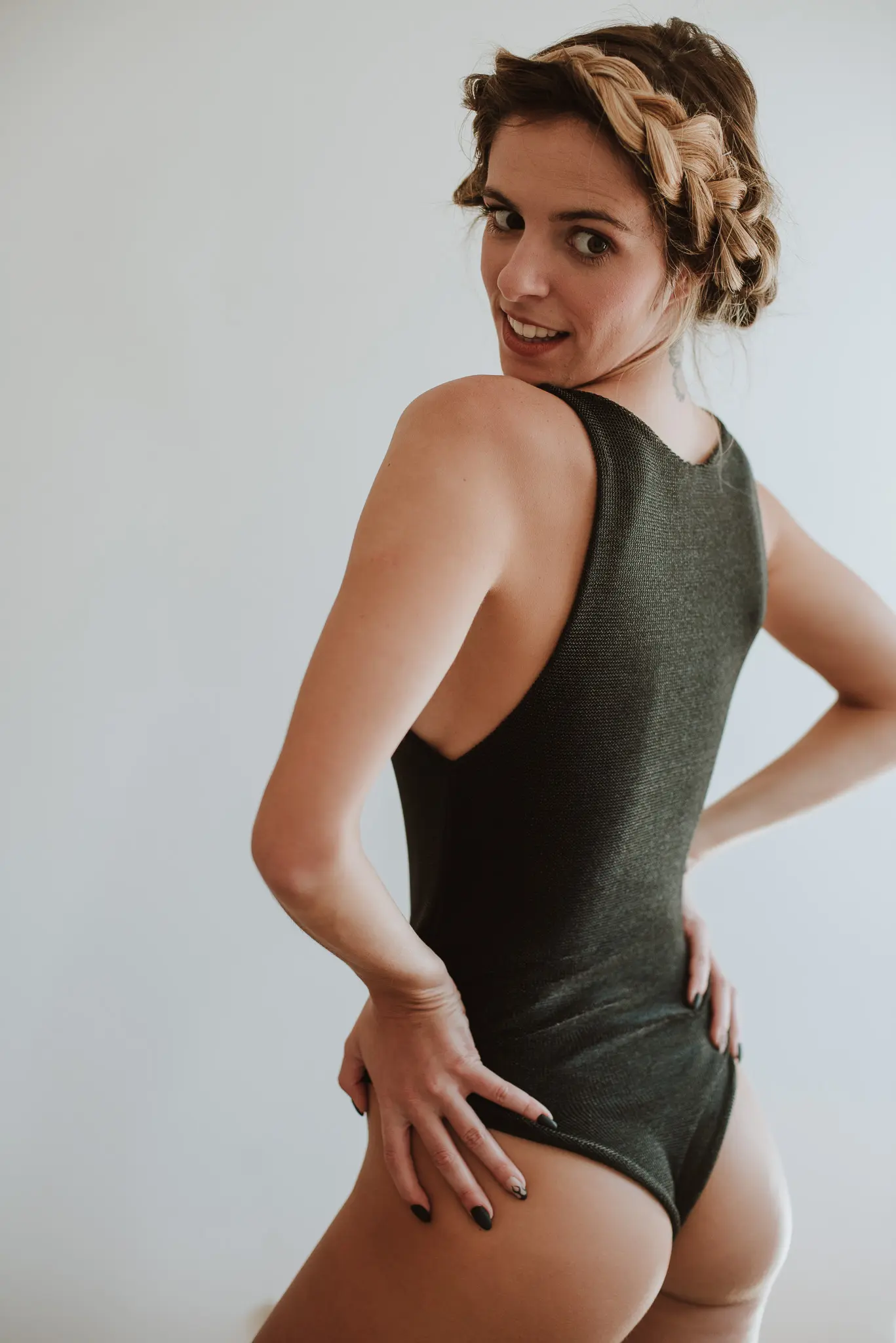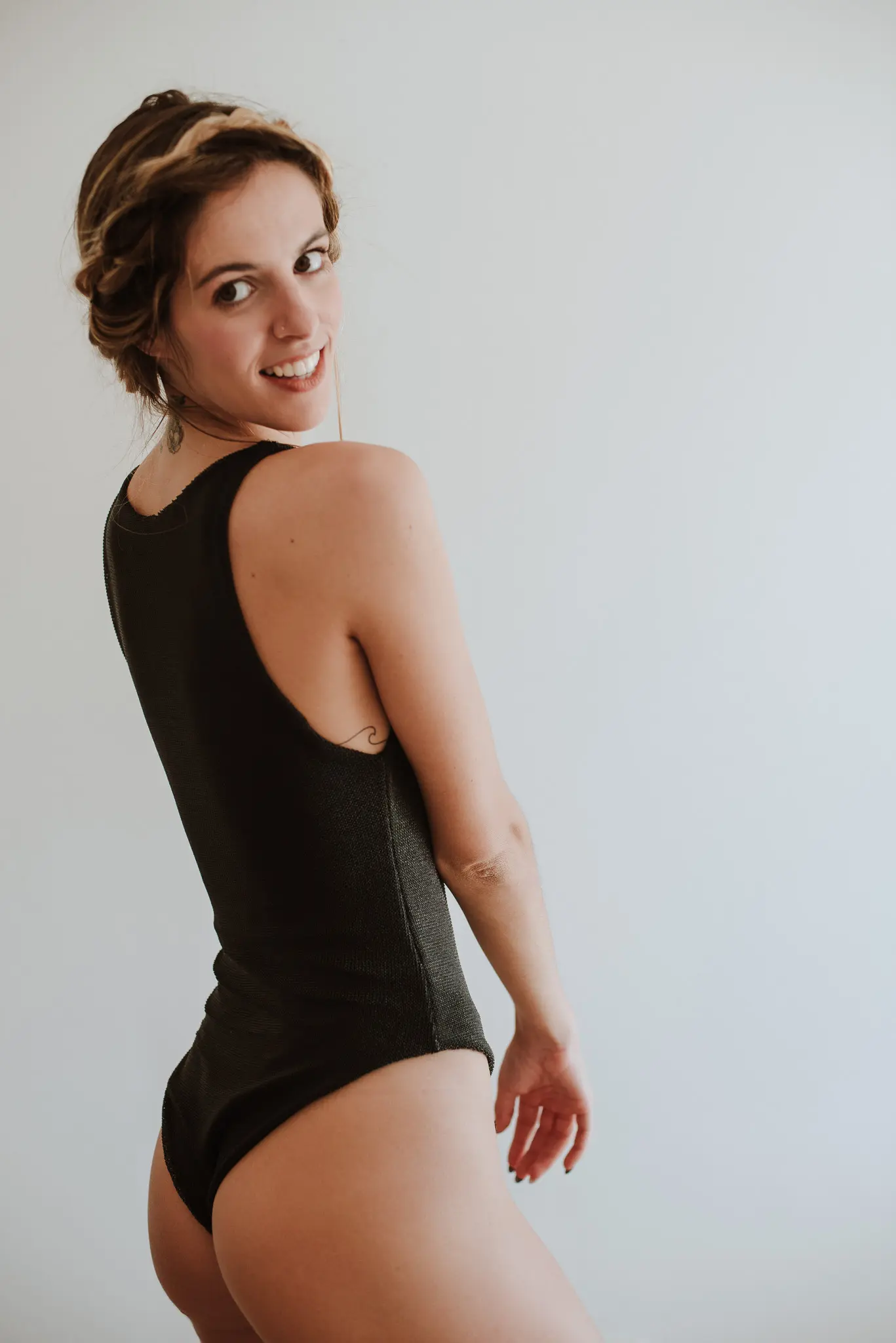 Body em malha aberta preta reversível para malha preta.