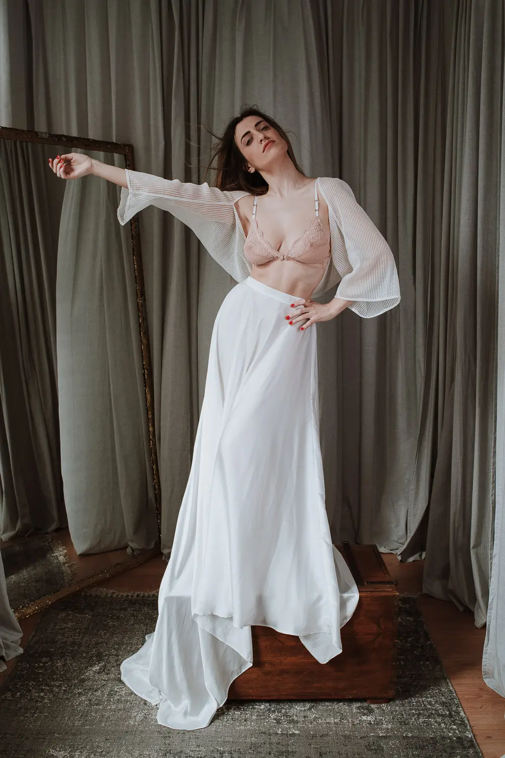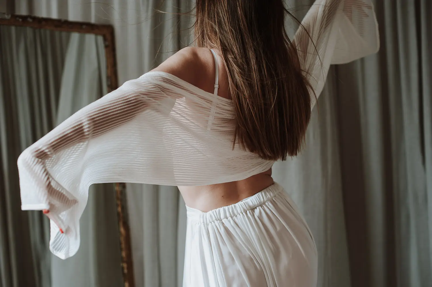 Agasalho (tapa ombros) transparente listado a branco (com relevo).